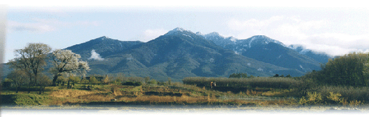 コテージ カーラボスコから歩いて数分の所、田圃の畦道から八ヶ岳を望むこの景色が見えます。頂上の雪が消えかかり左下の山桜が満開になる頃、里山は次第に緑豊かな大地へと生まれ変わります。