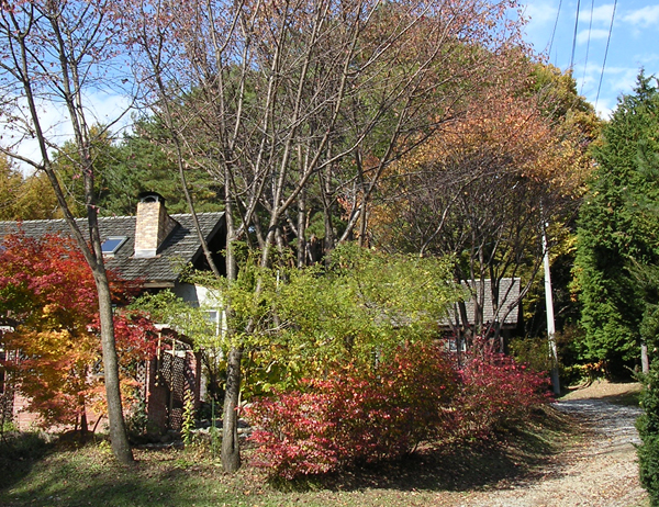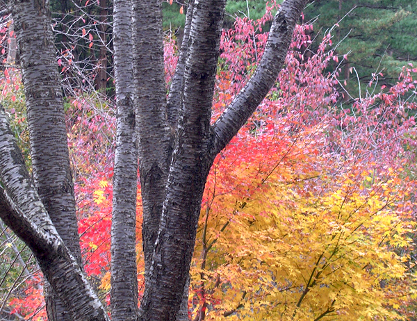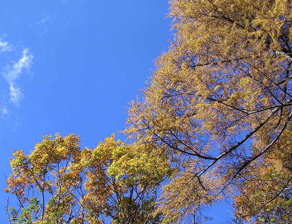 秋風の一吹きが色とりどりの葉を乱舞させる。