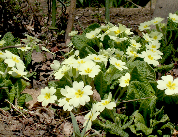 落ち葉の隙間からきのこたちが顔をのぞかせ、