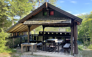 | 人気のバーベキューコーナー コテージ前の駐車場にあるバーベキューコーナー。ご宿泊者がご用意するものは飲み物と食材だけ。バーベキューコンロ、焼網・鉄板・紙皿・食器類・トングなどBBQに必要なセットは揃っております。備長炭並の火力と火持ちの良い太陽炭という炭を使用しています。基本炭代込み2,000円で火熾しまでお手伝致します。 BGMはBluetoothなどでBBQハウス内に流れるようになっております。ご予約の際にBBQ希望とお伝えください。また、コテージの外にある薪ピザ釜がSNSやGoogleMAPなどで紹介されていますが、現在は使用できません。 |